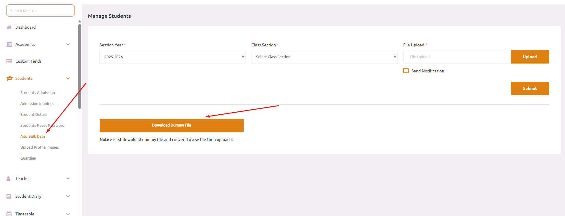Download Student Import Dummy CSV File and add data then import easily.