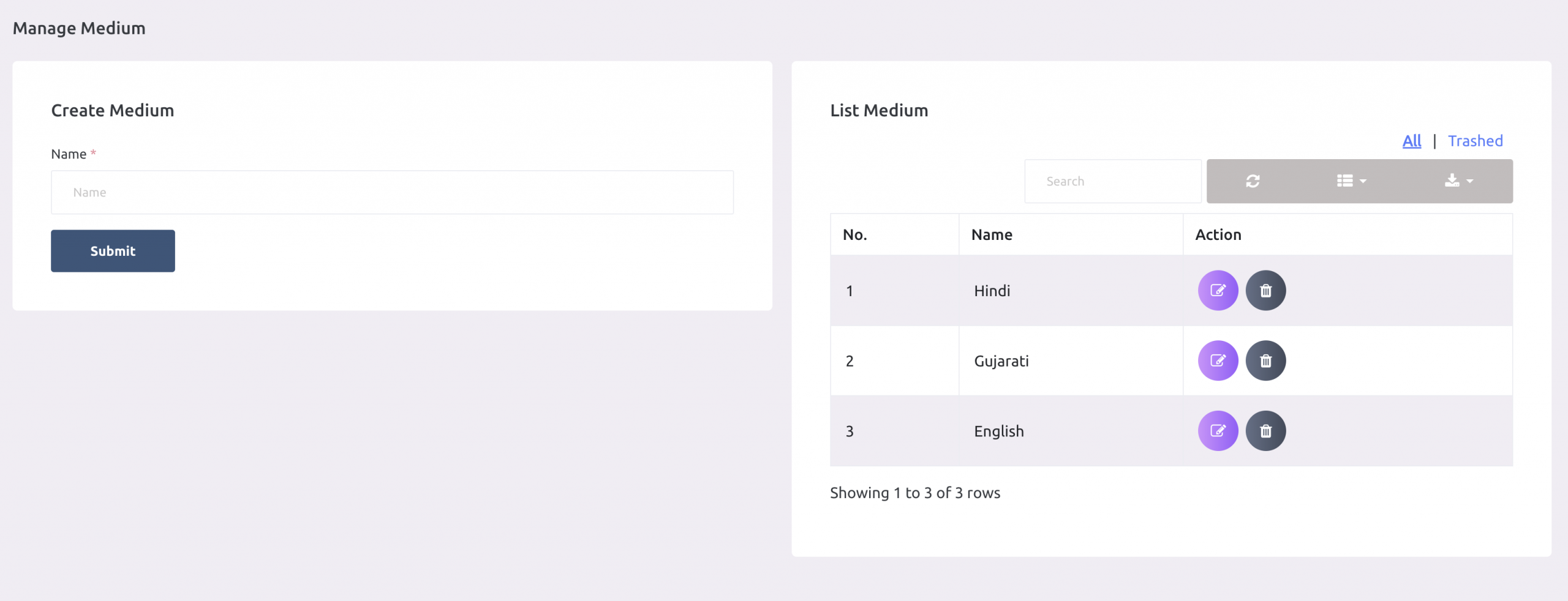 Medium here is considered as the language in which teaching happens. School admin need to add at least one medium value.