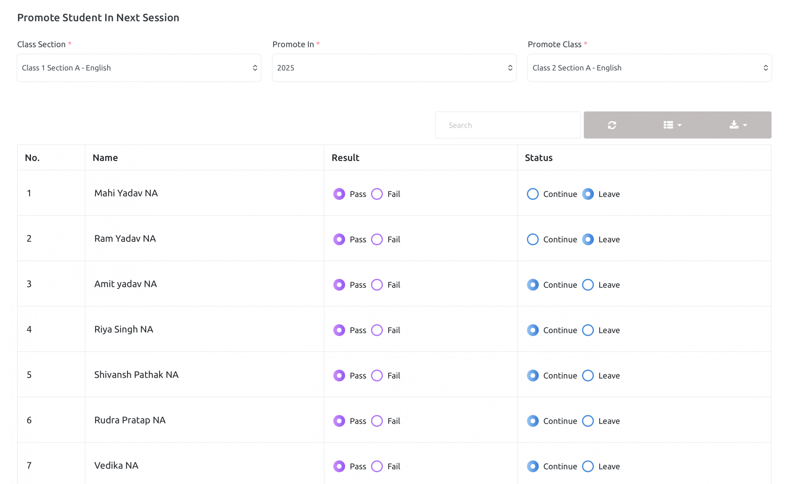 School admin can promote students from one session year to another session year.