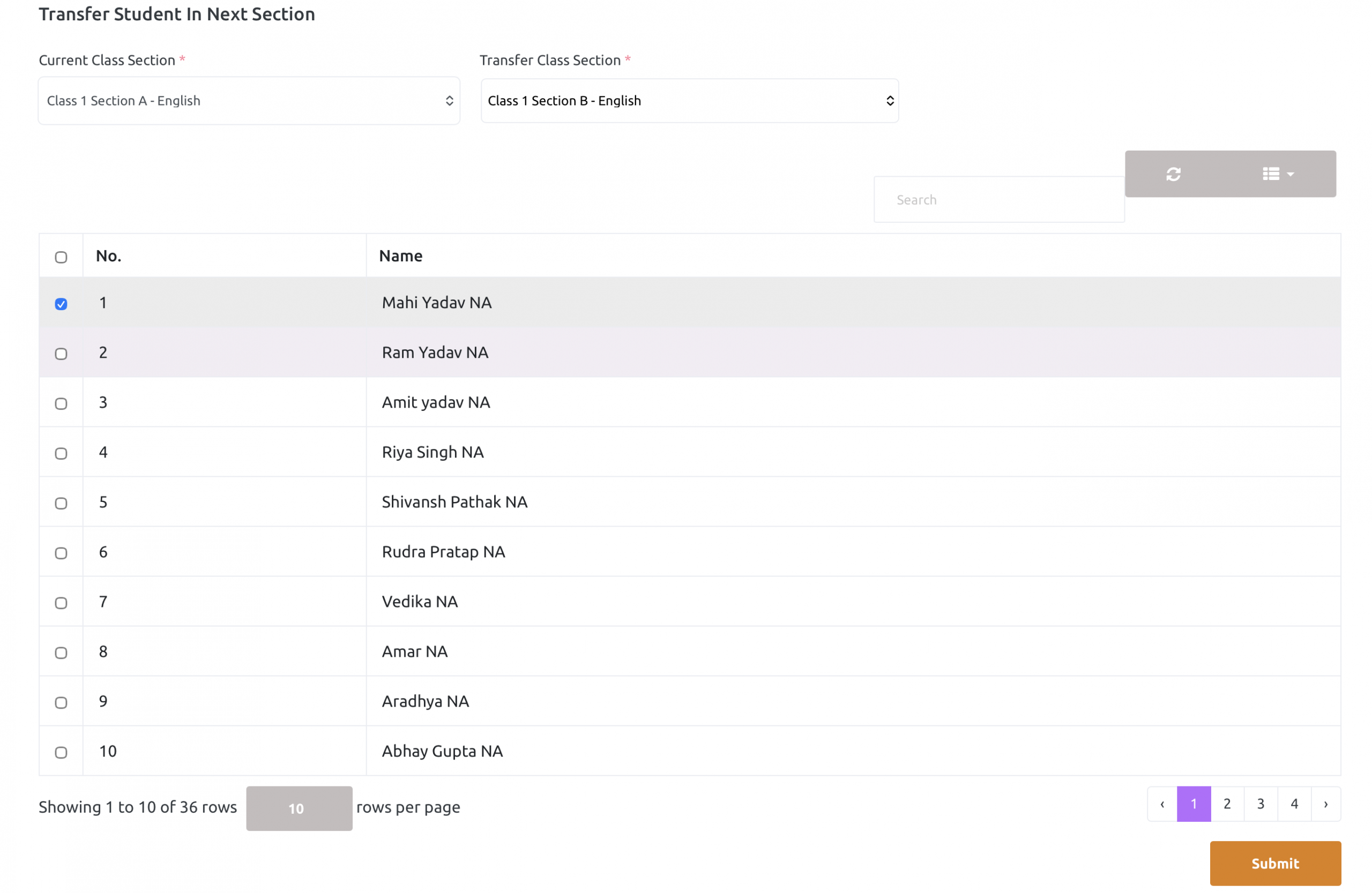 School admin can transfer students from one section to another section.