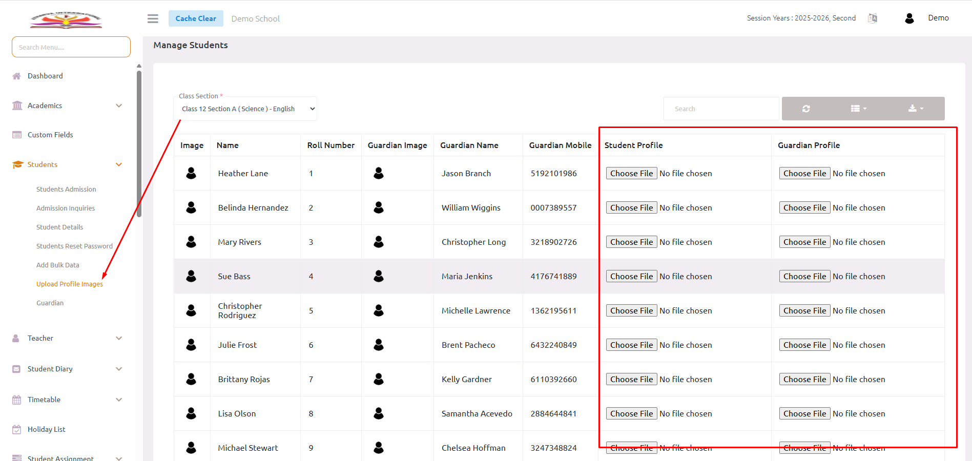 School Admin can upload bulk profile images for students and parents, streamlining the process of managing user profiles efficiently.